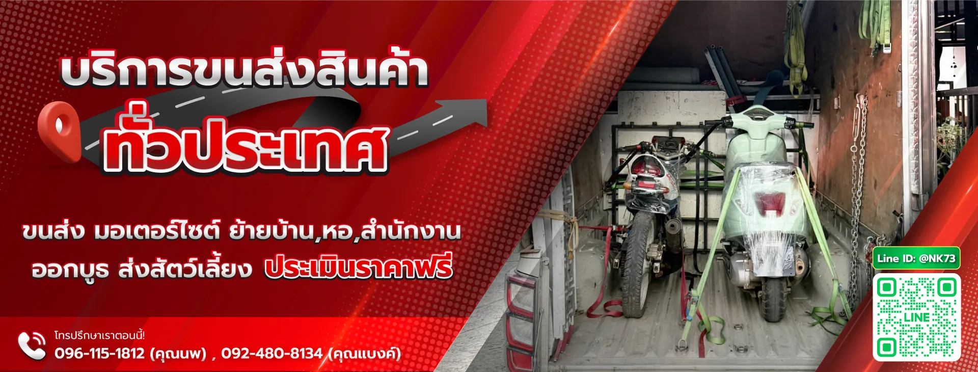 เราเป็นผู้ให้บริการขนส่งมอเตอร์ไซค์ที่มีความเชี่ยวชาญและประสบการณ์ยาวนานในการขนส่งมอเตอร์ไซค์ทั่วประเทศไทย ด้วยความมุ่งมั่นที่จะให้บริการที่รวดเร็ว ปลอดภัย และตรงเวลา เพื่อให้ลูกค้าของเราได้รับความสะดวกสบายสูงสุดในการขนส่งสินค้าของพวกเขา